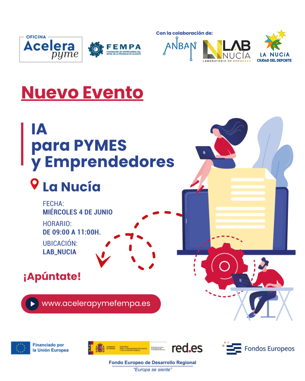 Esta formación está organizada por Lab_Nucia y la Oficina Acelera Pyme de FEMPA, dependiente del organismo autónomo Red.es y el Ministerio de Asuntos Económicos y Transformación Digital en colaboración con la concejalía de Comercio de La Nucía.